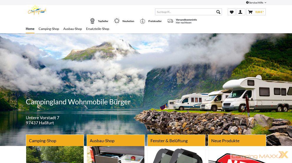 Im Onlineshop von Campingland Wohnmobile Bürger findest du eine riesige Auswahl an allem was du für dein Campingvergnügen brauchst. Ob Vorzelte, Geschirr, Sicherheitstechnik oder Navigationssysteme gibt es hier alles aus einer Hand.