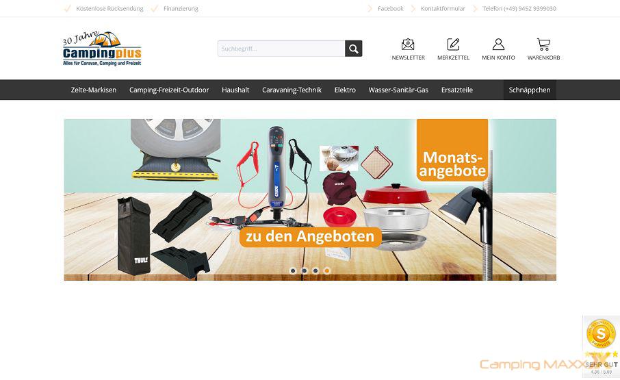Bei Campingplus.de kannst du alles finden, was du für deinen Campingurlaub brauchst. Als Fachhändler für Camping-, Caravan- und Freizeitzubehör bietet dir Campingplus.de eine breite Auswahl z.B. von Caravan-Vorzelten, Campingmöbeln, Fahrradträgern, automatischen Satellitenanlagen, Zeltheringen, Trekkingzelten, Campinggeschirren, TV- und Solaranlagen an. Das Ersatzteilsortiment beinhaltet Artikel und Ersatzteile von Marken wie Crespo, Reich, Dometic, Thule, Fiamma, Cadac, Lilie, Brunner, Truma, Westfield, Dukdalf, Alko, Winterhoff, Hartal oder Milenco und vieles mehr.