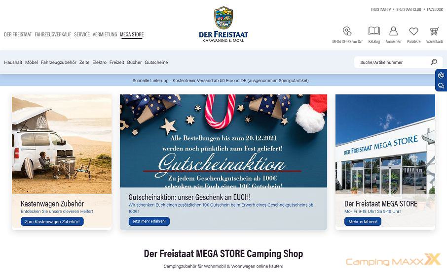 Der Freistaat MEGA STORE Camping Shop ist die perfekte Anlaufstelle für alle Outdoor-Fans. Mit über 10.000 Artikeln und mehr als 50 Marken findest du hier alles, was du für dein nächstes Abenteuer brauchst. Von Campinggeschirr über Campingmöbel bis hin zu Wohnmobilzubehör ist hier alles vorhanden. Und als Mitglied der Freistaat-Clubkarte erhältst du 3% Rabatt auf deine Einkäufe.