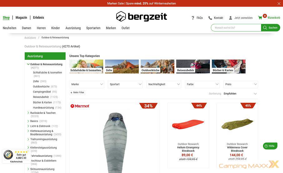 Im Bergzeit Online-Shop findest du alles für Dein Outdoor-Erlebnis: Über 50.000 ausgewählte Artikel von Marken wie Patagonia, Mammut und The North Face. Ab 100 Euro kostenloser Versand, bis 100 Tage kostenlose Retoure, klimaneutraler Versand & vieles mehr!